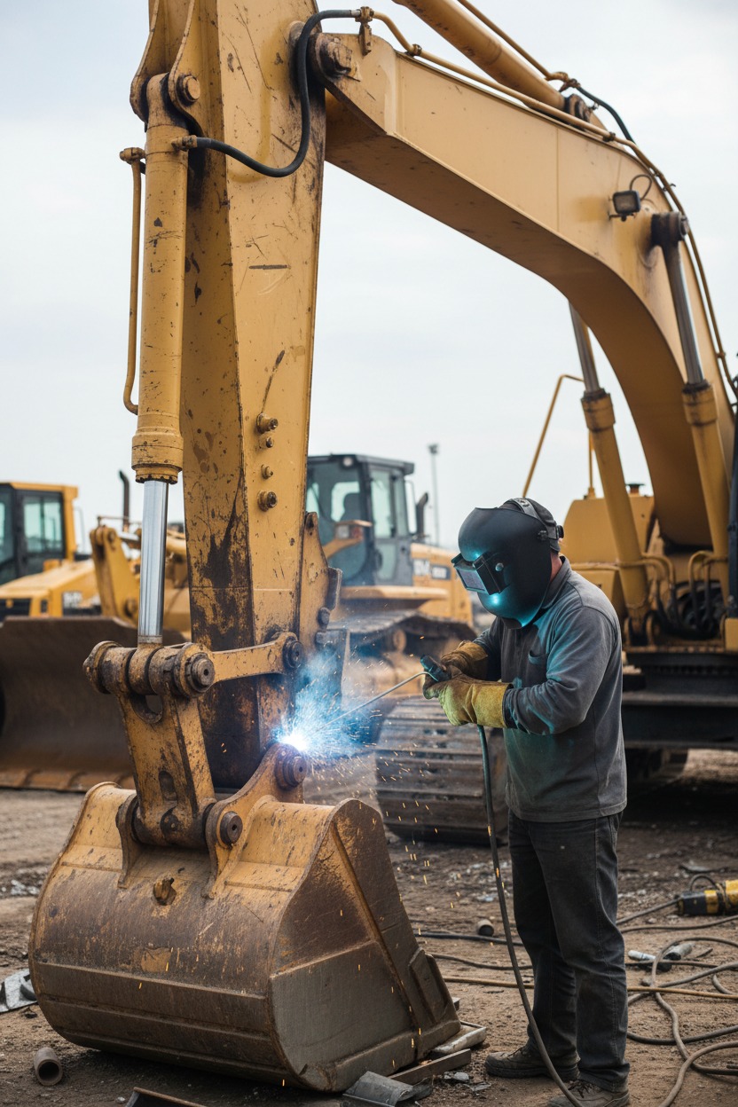Une fissure sur un godet, un bras mécanique endommagé ou une structure métallique cassée peut immobiliser un engin et ralentir l’avancement d’un chantier.
